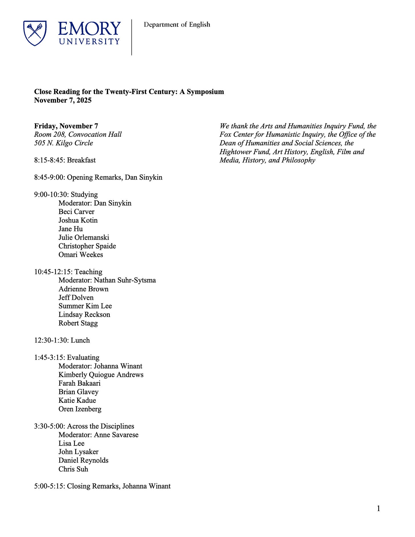 From the Close Reading For The 21st Century Symposium, hosted by Emory University. Why is close reading best understood as a conversation? What are its evaluative standards? How does it extend the conversation beyond literary studies?