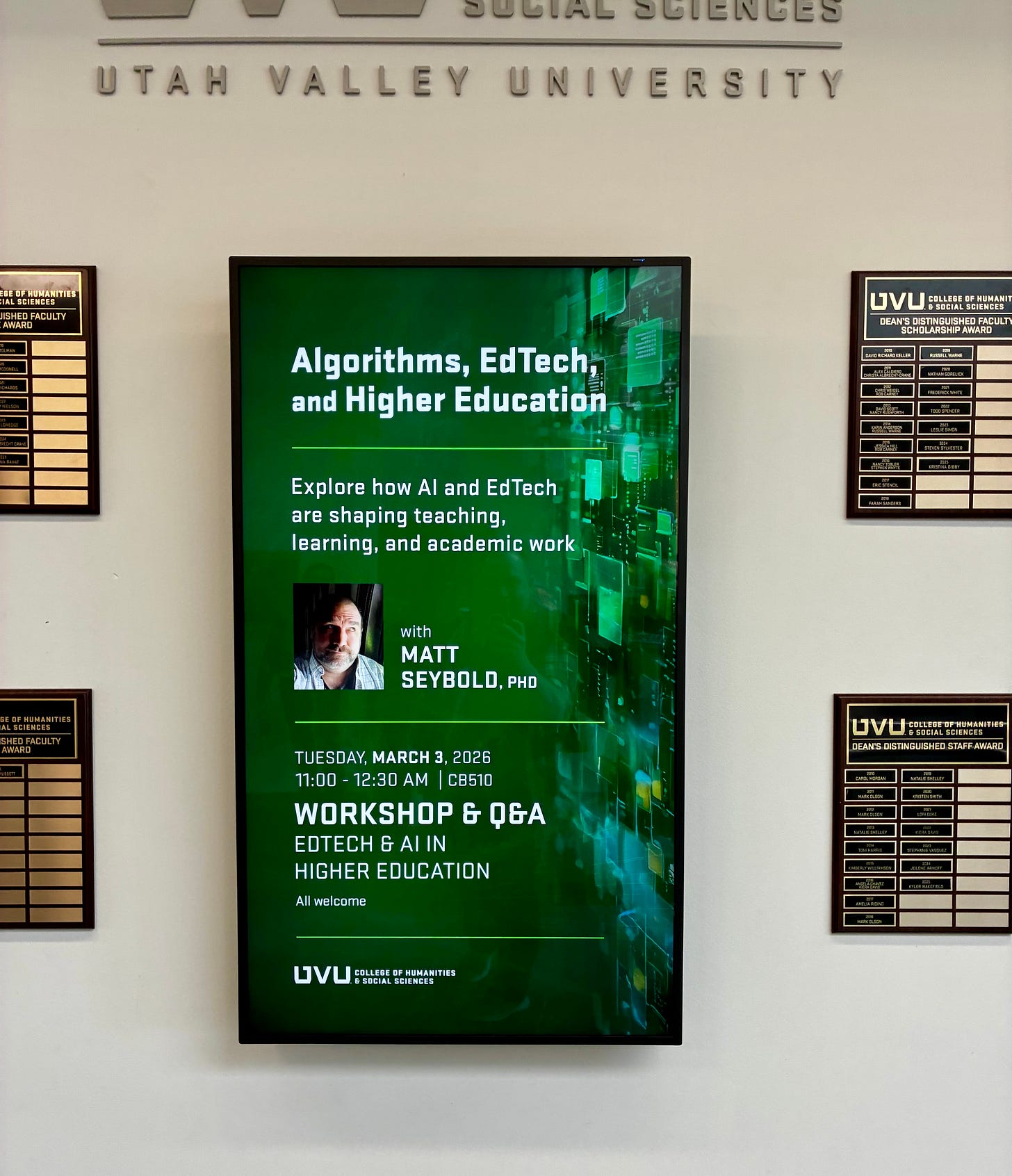 The recording of the talk is followed by a studio conversation with two UVU faculty and a student about the impact of the Generative AI boom on their institution.