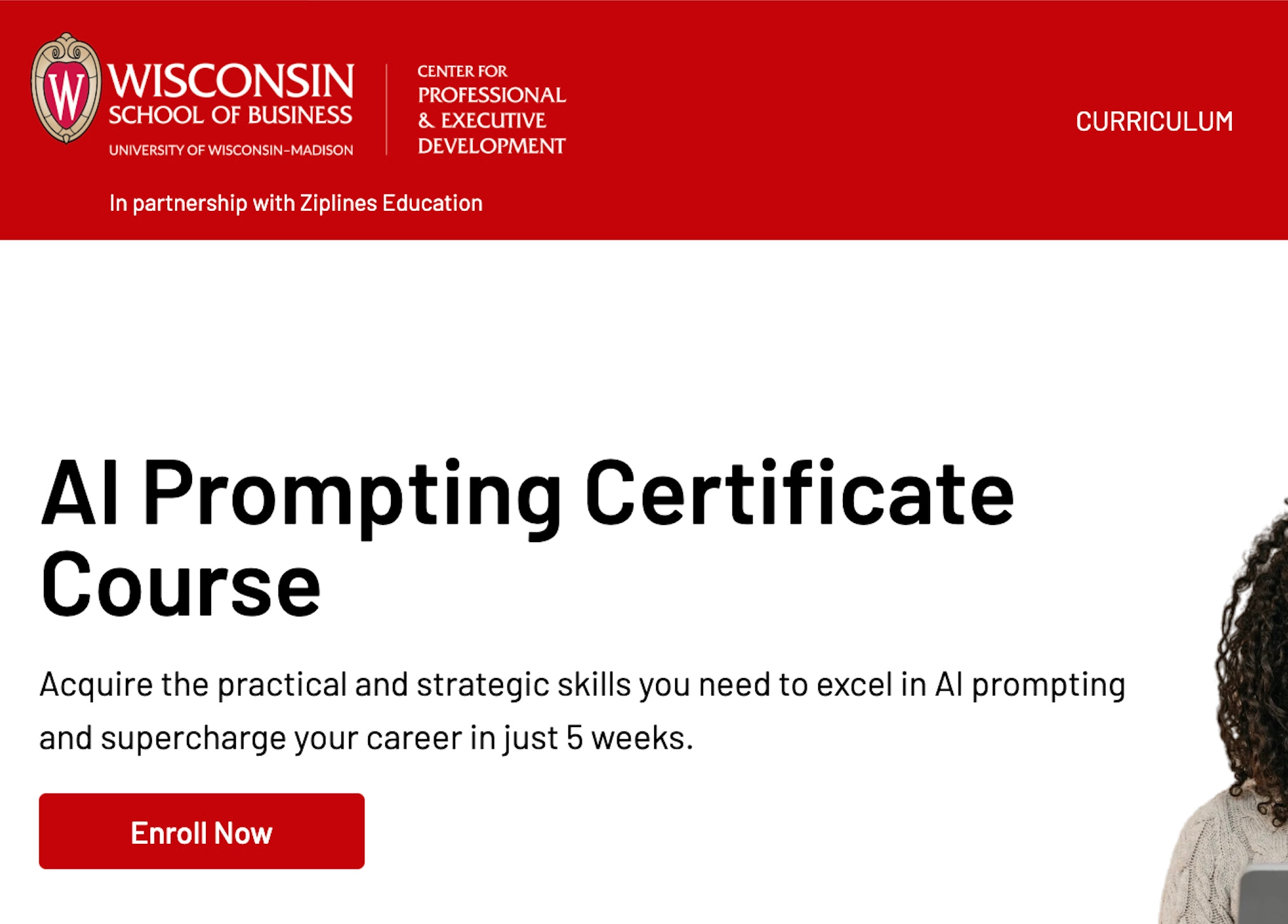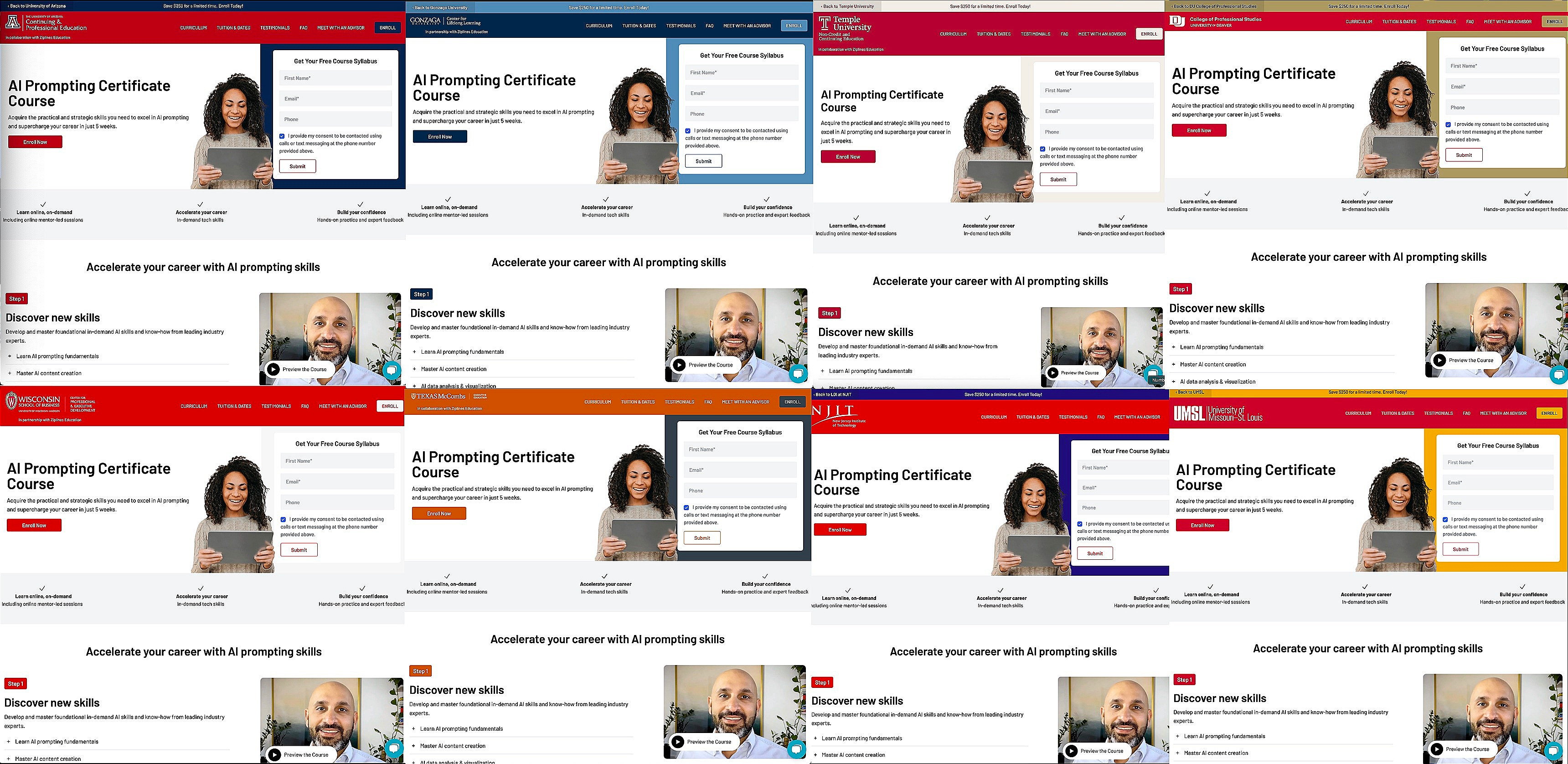 “Powered by” is an allusion to the fine print which appears on some promotional and admission materials associated with courses and certifications which are offered through accredited institutions, but produced and distributed by private companies. This fine print does not necessarily say powered by, but offers some similarly tepid acknowledgment that the educational institution may not fully control the content or delivery of the course. The landing page for “AI Prompting” at Wisconsin, for instance, says “in partnership with Ziplines.”